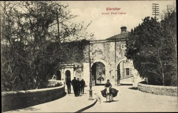 Ak Gibraltar, South Port Gates, Mann auf einem Esel