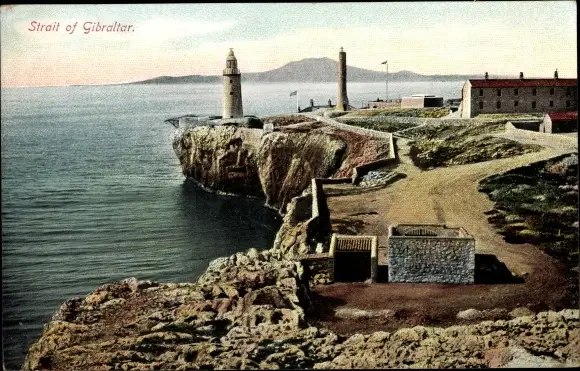 Ak Gibraltar, Straße von Gibraltar, Leuchtturm, Steilklippen