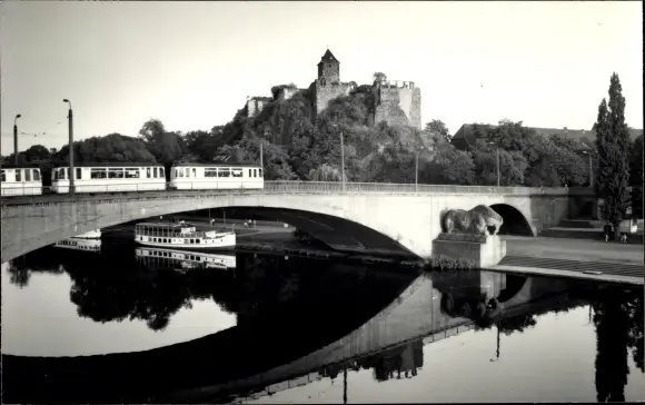 Ak Giebichenstein Halle an der Saale, Burg, Brücke, Straßenbahn