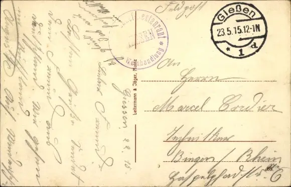 Zustand, siehe Scan, gelaufen, 1915 - ca 14 cm X 9 cm