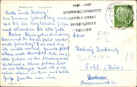 Zustand, siehe Scan, gelaufen, 1957 - ca 14 cm X 9 cm