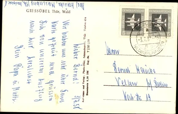 gelaufen 1958, Eckknick links oben, sonst guter Zustand