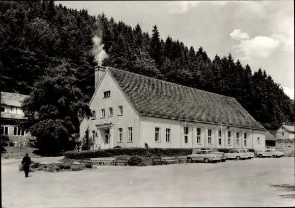 Ak Gießübel in Thüringen, Kulturhaus, Außenansicht mit Autos