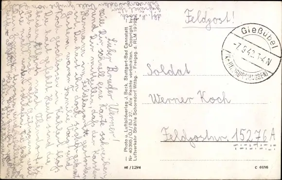 Zustand, siehe Scan, gelaufen, 1942 - ca 14 cm X 9 cm