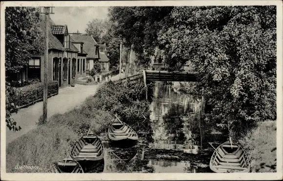 Ak Giethoorn Overijssel Niederlande, Fluss, Brücke, Ruderboote, Häuser
