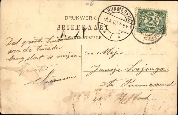 Zustand, siehe Scan, gelaufen, 1907 - ca 14 cm X 9 cm