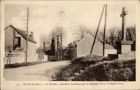 Ak Gilles, Le Calvaire, Carrefour des Routes de la Chausee d'Ivry