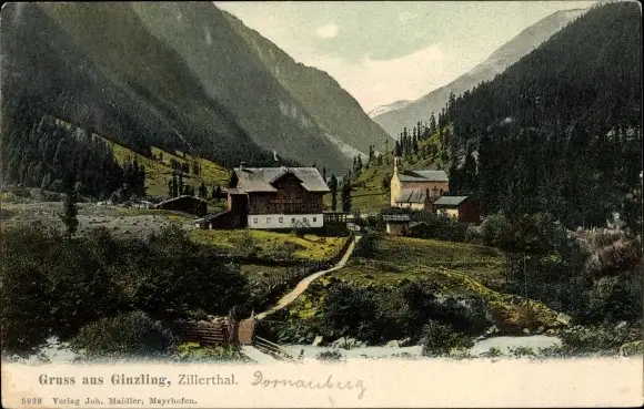 Ak Ginzling in Tirol, Blick auf den Ort, Gasthaus