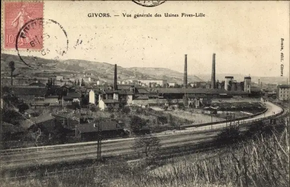 Ak Givors Rhône, Vue generale des Usines Fives Lille