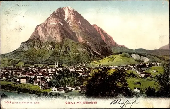Ak Glarus Stadt Schweiz, Totalansicht mit Glärnisch