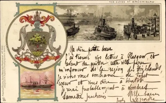 Ak Glasgow Schottland, Clyde, Wappen, Segelschiff