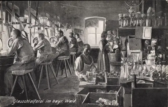 Ak Glasschleiferei im bayrischen Wald, Innenansicht