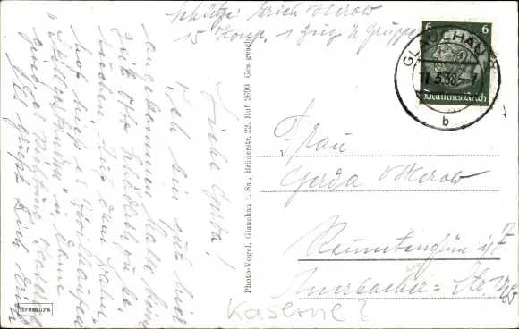 Zustand, siehe Scan, gelaufen, 1938 - ca 14 cm X 9 cm