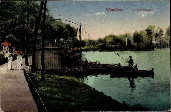 Ak Glauchau in Sachsen, Gründelteich, Boot