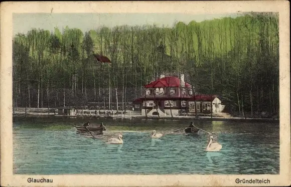 Ak Glauchau in Sachsen, Gründelteich, Schwäne