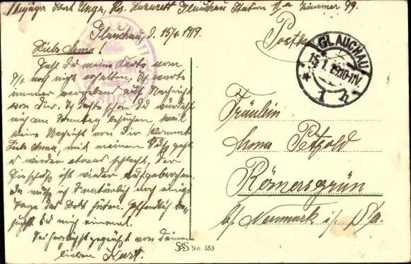 Zustand, siehe Scan, gelaufen, 1919 - ca 14 cm X 9 cm