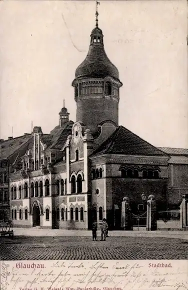 Ansichtskarte, Postkarte, Badeanstalt, Schwimmbad, Freibad, Strandbad, Volksbad