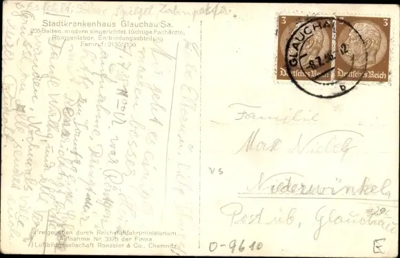 Ak Glauchau in Sachsen, Stadtkrankenhaus, Fliegeraufnahme