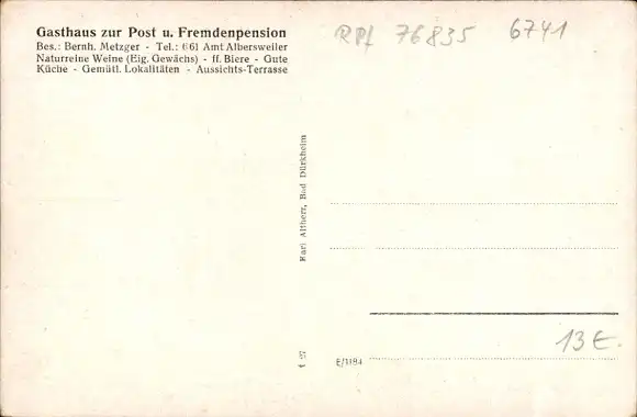 Zustand, siehe Scan, ungelaufen- Inh. Bernh. Metzger - ca 14 cm X 9 cm