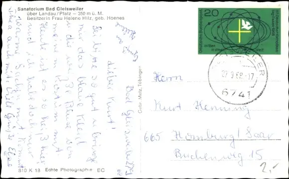 Zustand, siehe Scan, gelaufen- Bes. Helene Hilz - ca 14 cm X 9 cm