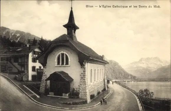 Ak Glion Kanton Waadt, L'Eglise Catholique, Straßenpartie, Dents du Midi