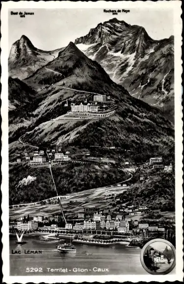 Ak Glion Montreux Kanton Waadt, Chemin de Fer de Territet Glion, Funiculaire, Standseilbahn