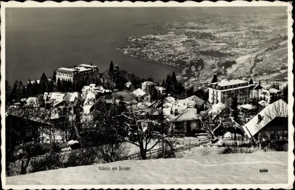 Ak Glion Montreux Kanton Waadt, Panorama, Winter