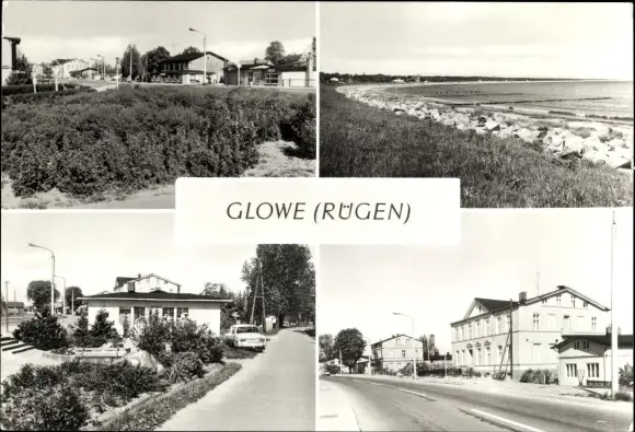 Ak Glowe auf Rügen, Strand, Teilansicht, Straßenpartie