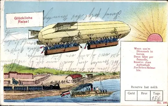 Ak Glückliche Reise, Zeppelin, Luftschiff, Dampfer