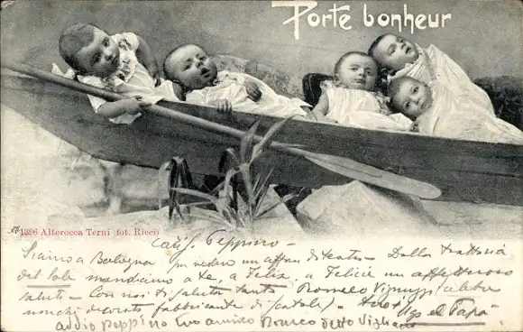 Ak Glücksbringer, Kleinkinder in einem Boot