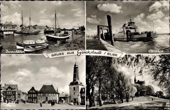 Ak Glückstadt an der Elbe, Fähre, Wasserturm, Markt, Innenhafen