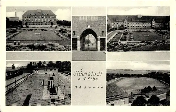 Ak Glückstadt an der Elbe, Kaserne, Schwimmbad