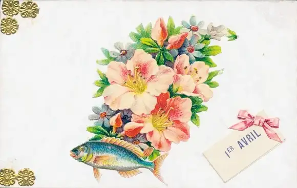 Ak Glückwunsch 1. April, Blumen, Fisch