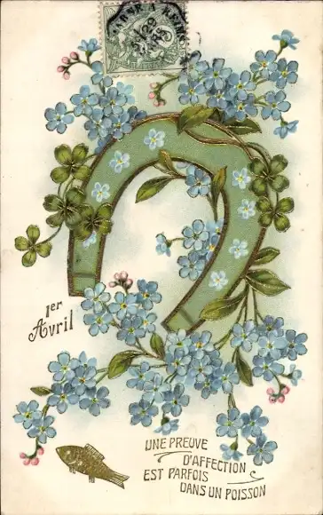 Ak Glückwunsch 1. April, Hufeisen, Fisch