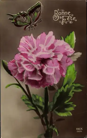 Ak Glückwunsch, Blühende Blume, Schmetterling