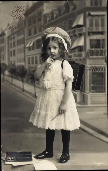 Ak Glückwunsch Einschulung, Mädchen mit Schulranzen