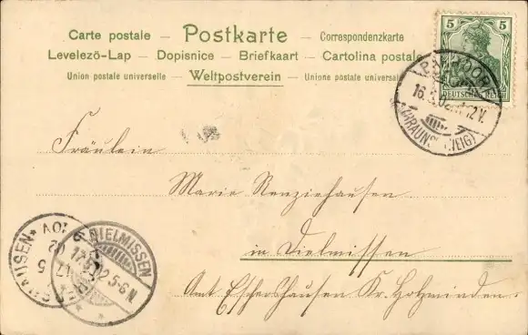 Zustand, siehe Scan, gelaufen, 1902 - ca 14 cm X 9 cm