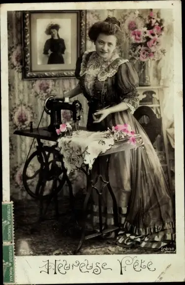Ak Glückwunsch Geburtstag, Frau mit Nähmaschine