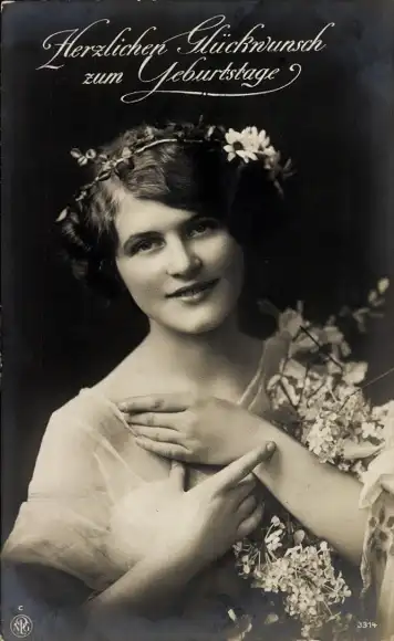 Ak Glückwunsch Geburtstag, Junge Frau mit Blütenzweigen