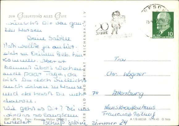 Ansichtskarte, Postkarte, Glückwunsch, Gratulation, Anerkennung, Geburtstag, Wiegenfest