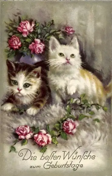 Ak Glückwunsch Geburtstag, Katzen, Rosen