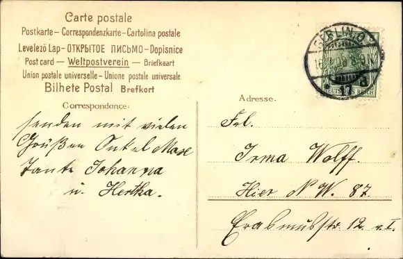 Zustand, siehe Scan, gelaufen, 1908 - ca 9 cm X 14 cm