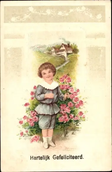 Ak Glückwunsch Geburtstag, Kind mit Rosen