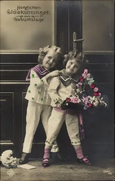 Ak Glückwunsch Geburtstag, Kinder, Blumen