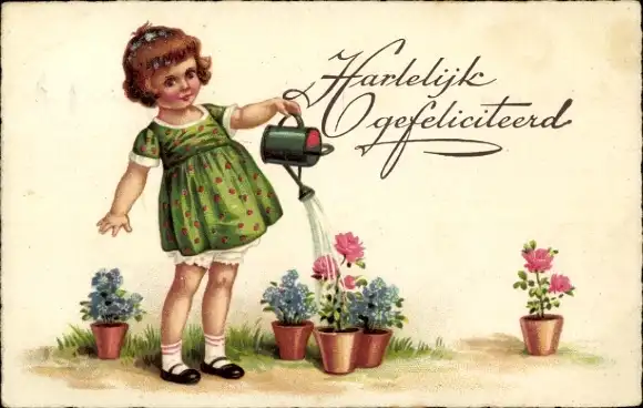 Ak Glückwunsch Geburtstag, Mädchen gießt Blumen
