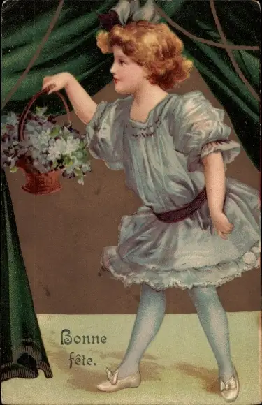 Ak Glückwunsch Geburtstag, Mädchen mit Blumenkorb