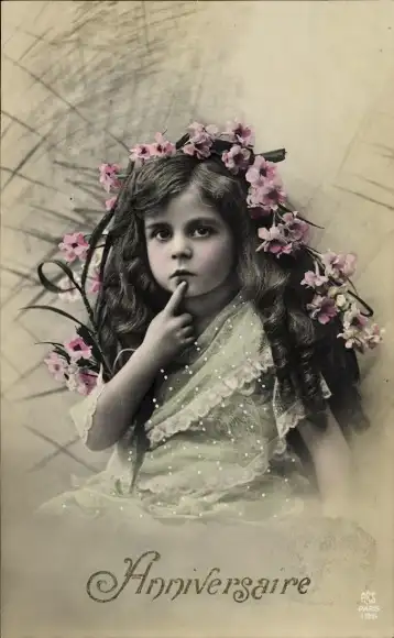 Ak Glückwunsch Geburtstag, Mädchen mit Blumenkranz