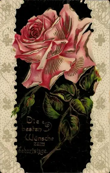 Ak Glückwunsch Geburtstag, Rose, Glüksklee