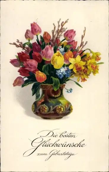 Ak Glückwunsch Geburtstag, Tulpen in einer Blumenvase