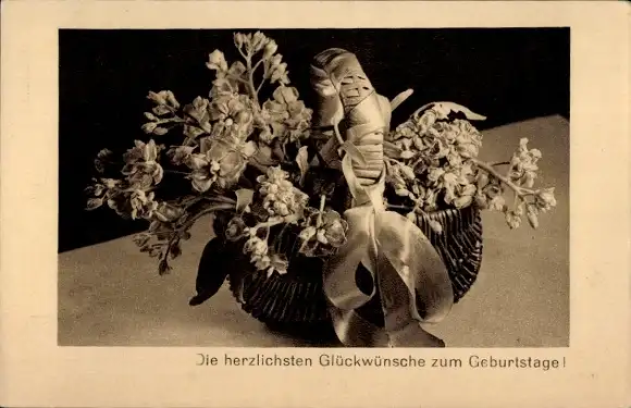 Ak Glückwunsch Geburtstag, Weidenkorb mit Blumen